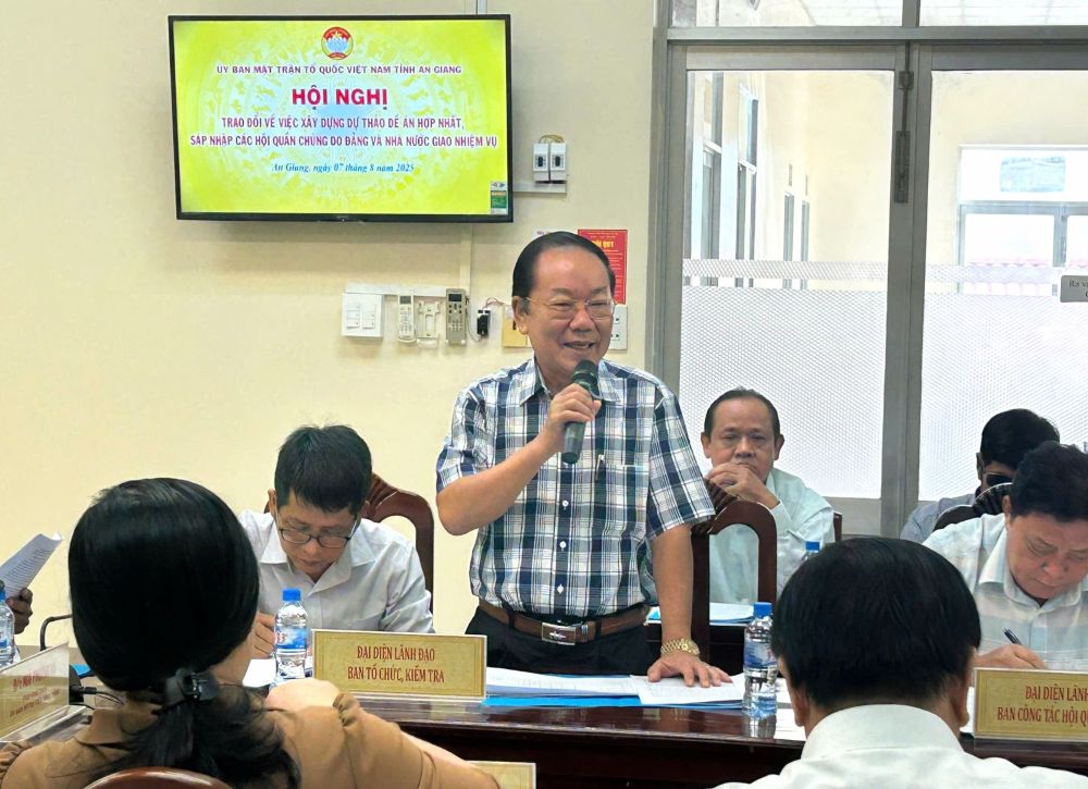 Sáng 7/8/2025, Ủy ban MTTQ Việt Nam tỉnh An Giang đã tổ chức hội nghị để trao đổi về việc hợp nhất, sáp nhập các hội quần chúng trên địa bàn tỉnh. Đồng chí Ngô Phương Vũ, Phó Chủ tịch UBMTTQ Việt Nam tỉnh, chủ trì hội nghị. Cùng dự có lãnh đạo các sở, ngành tỉnh và lãnh đạo 32 hội thuộc Kiên Giang (cũ) và An Giang (cũ).